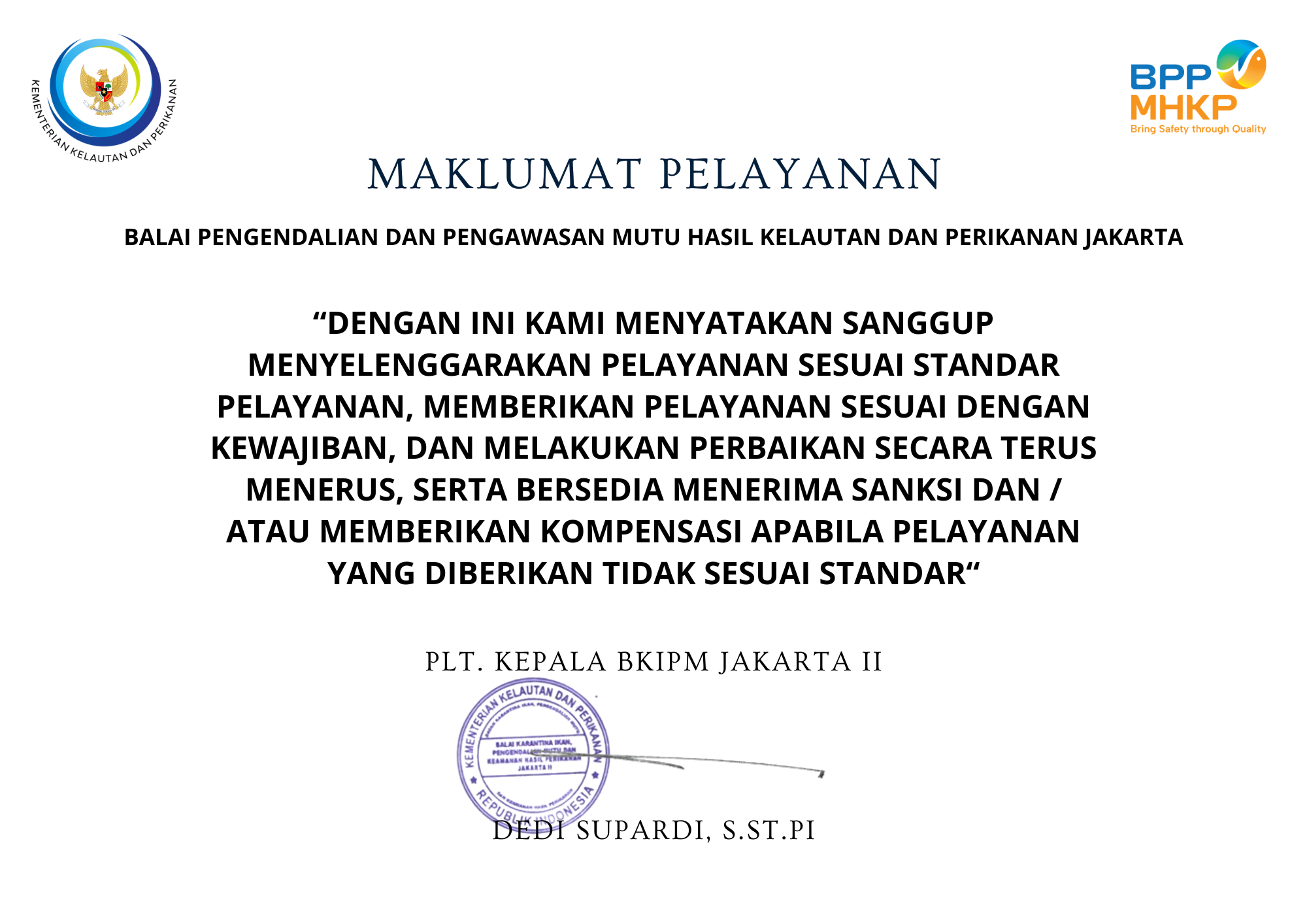Plt. KEPALA BALAI PENGENDALIAN DAN PENGAWASAN MUTU HASIL KELAUTAN DAN PERIKANAN JAKARTA