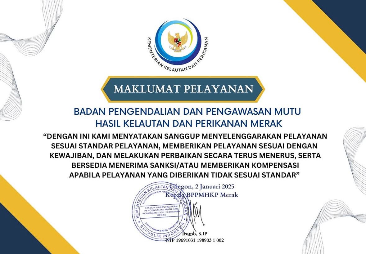 INFORMASI PUBLIK STASIUN PENGENDALIAN DAN PENGAWASAN MUTU HASIL KELAUTAN DAN PERIKANAN MERAK