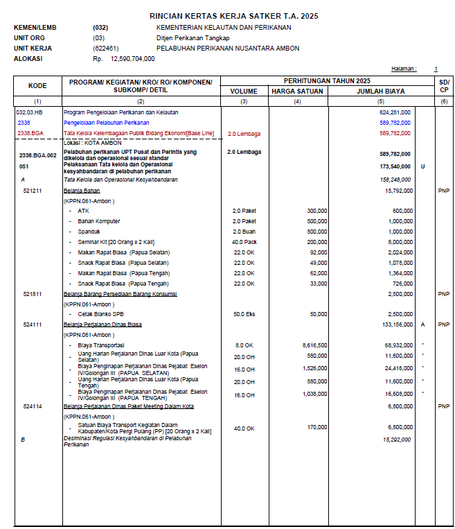 Rencana Kerja dan Anggaran (RKA-K/L) Pelabuhan Perikanan Nusantara Ambon TA. 2025